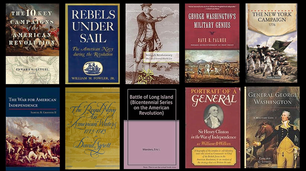 The top row of books on this page are written by British scholars, and thus give the British viewpoint on the American War for Independence. Some of these are hard to obtain, but you should be able to find Mackesy's The War for America, 1775-1783. The two books by Patrick K. O'Donnell are very readable histories of two units who played a prominent role in this campaign and in the war as a whole; namely Glover's Marblehead Regiment and the 1st Maryland Regiment. I highly recommend Daughn's The Revolution on the Hudson, which covers the 1776 campaign (and beyond) in detail. The Battle of Harlem Heights is a good recent micro-history of that battle and its significance.